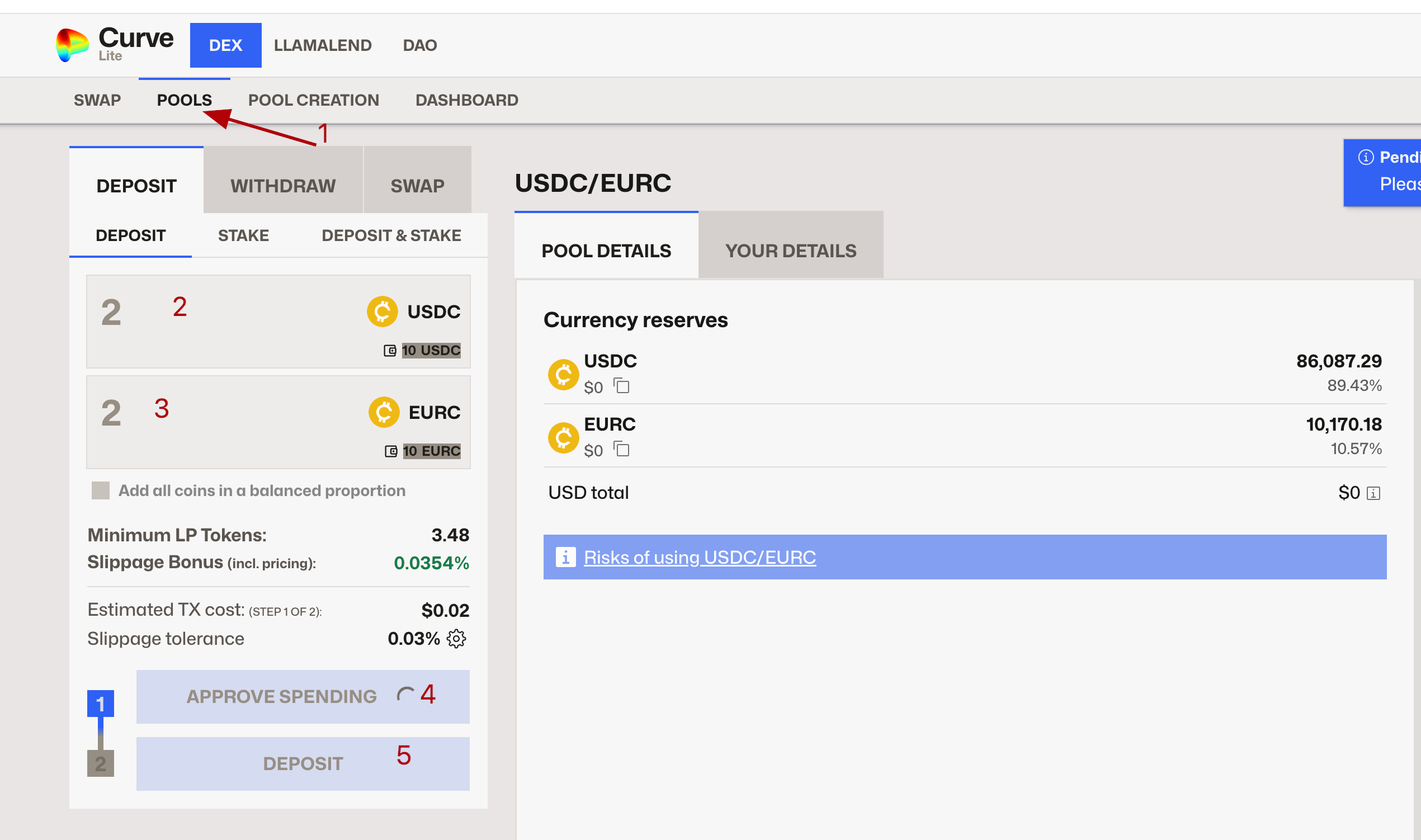 2.1. Open the Pools tab, select one of the pools, and add liquidity: