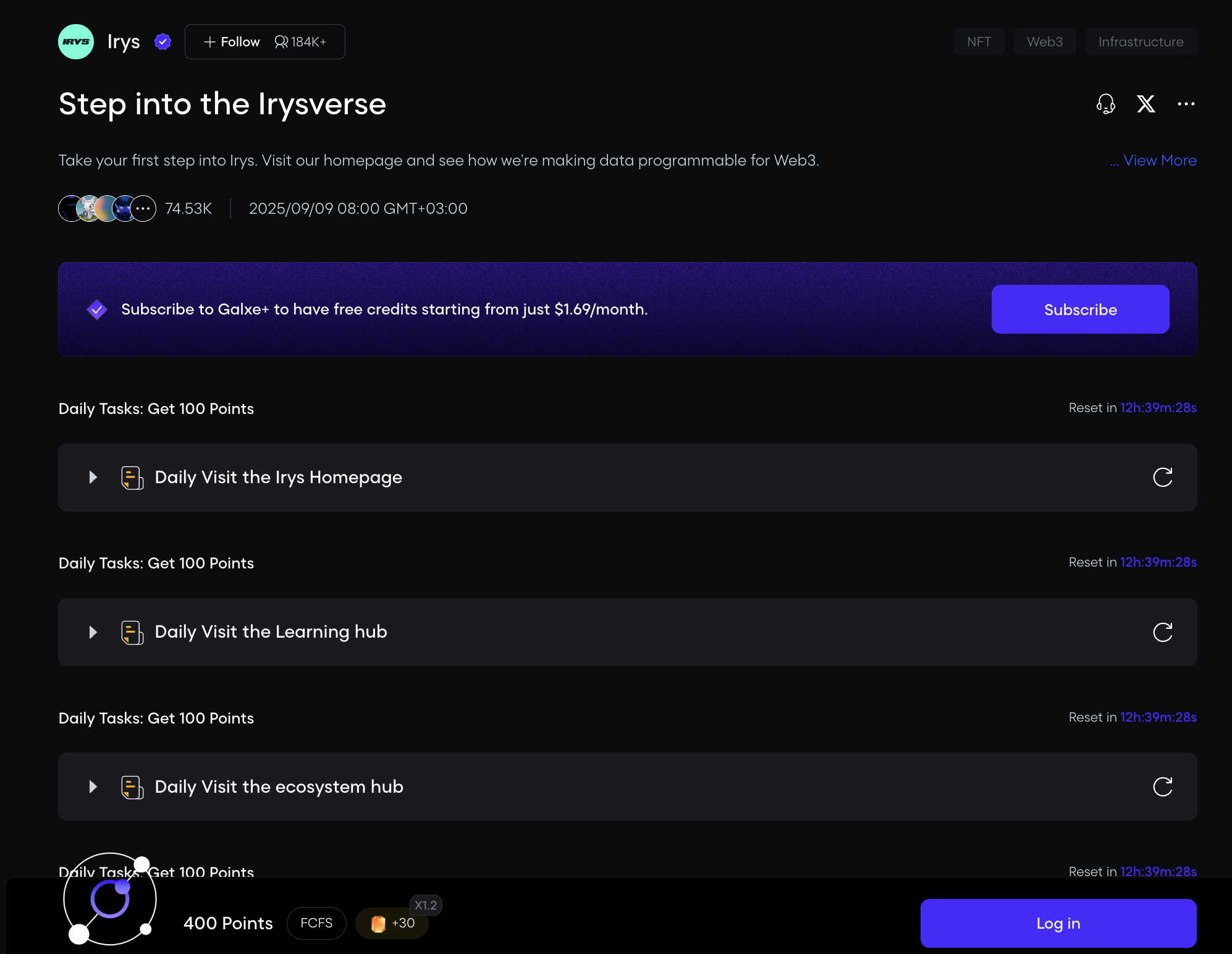 Complete the tasks to qualify for potential Irys airdrops and rewards . Follow step-by-step instructions and track task updates and statuses to become one of the potential recipients of the Irys Airdrop.