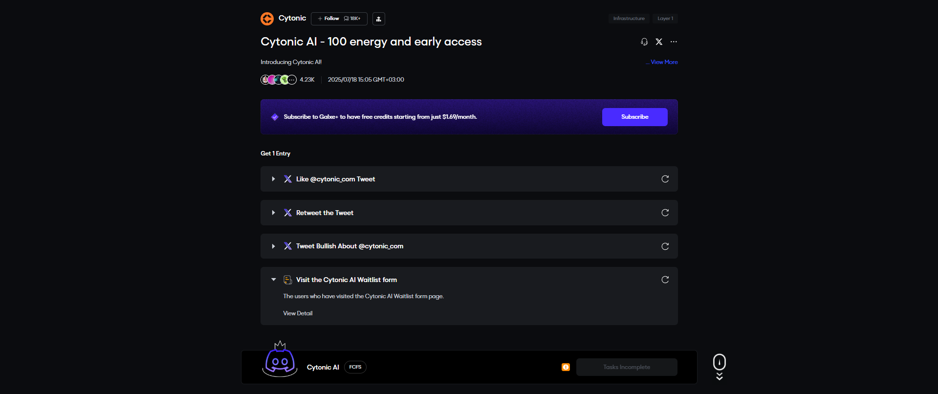 Cytonic has launched tasks on Galxe, and you can get the Cytonic AI role!