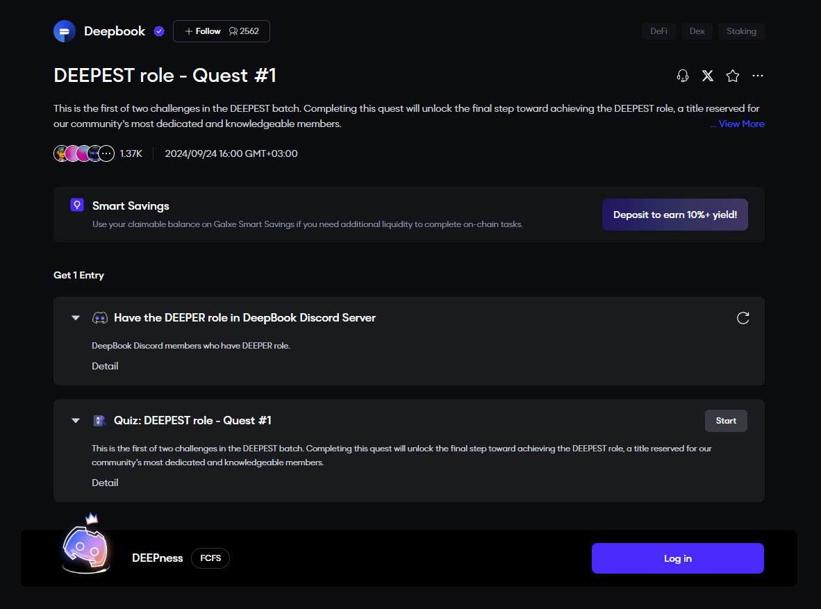 Complete the tasks to qualify for potential DeepBook airdrops and rewards . Follow step-by-step instructions and track task updates and statuses to become one of the potential recipients of the DeepBook Airdrop.