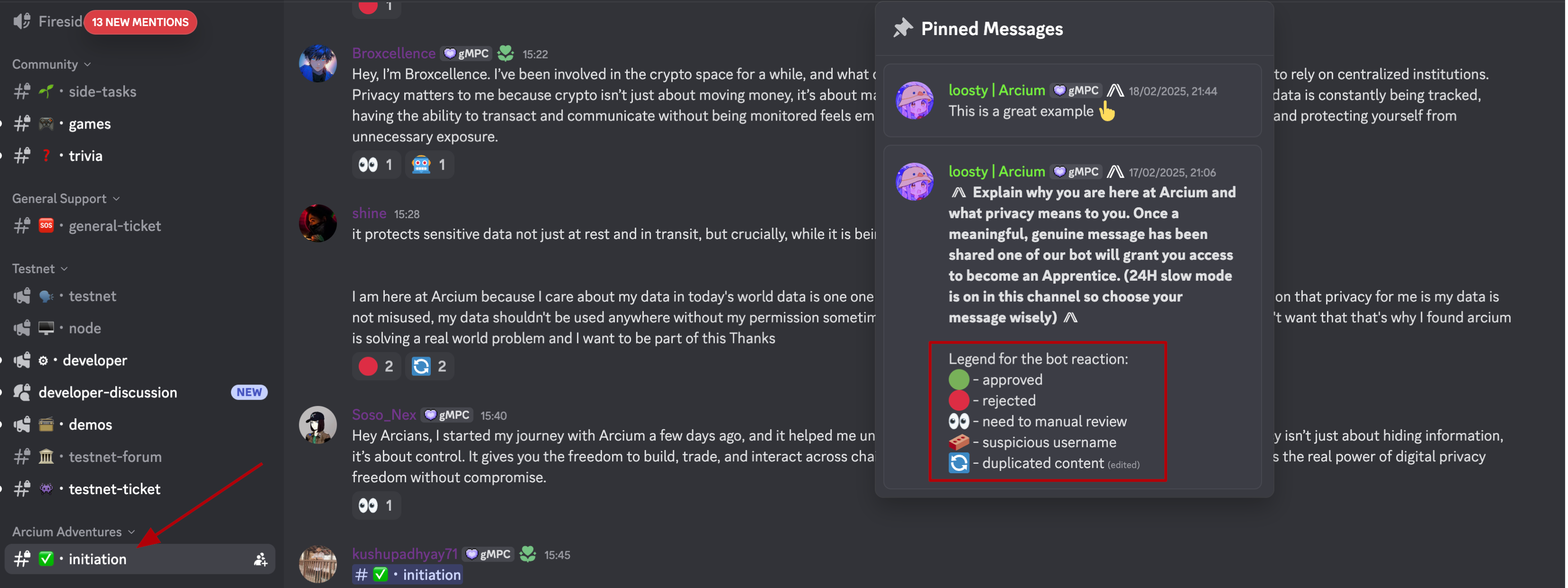 1. Join Discord, pass verification, open the #intuition channel, introduce yourself, and share your understanding of the word “ privacy.” If the bot approves your application, you will see a green reaction on your message (as shown in the screenshot):