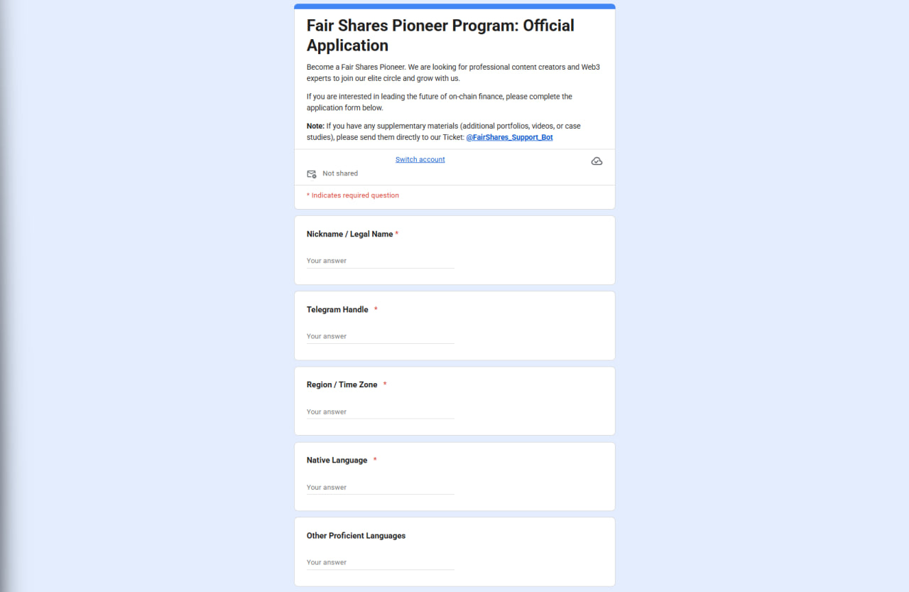 Complete the tasks to qualify for potential Fair Shares airdrops and rewards . Follow step-by-step instructions and track task updates and statuses to become one of the potential recipients of the Fair Shares Whitelist.