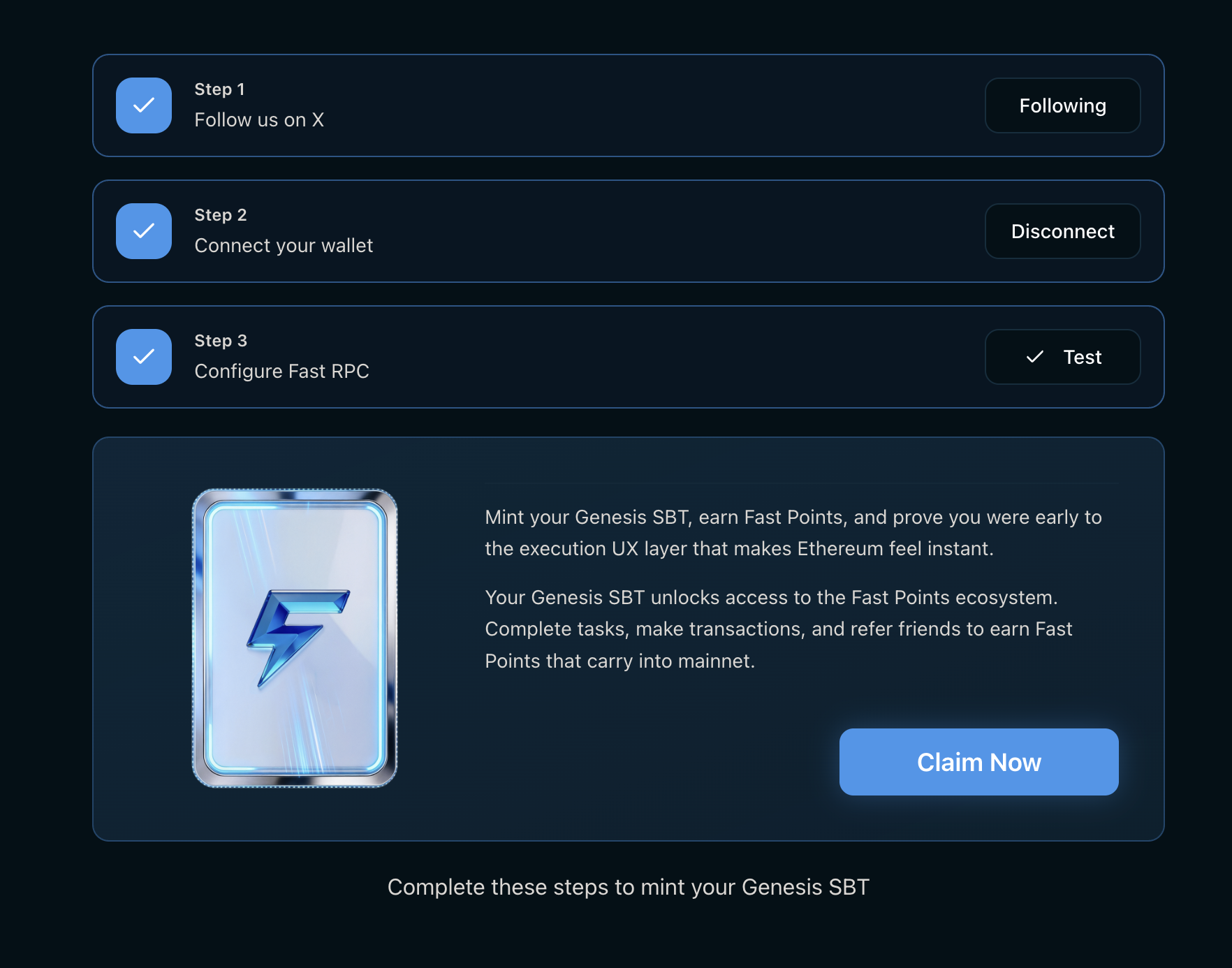 Fast Protocol has announced Genesis SBT, as well as a program with Miles farming. We can set up the project's RPC, mint SBT, and start earning Miles for swaps and inviting friends.
