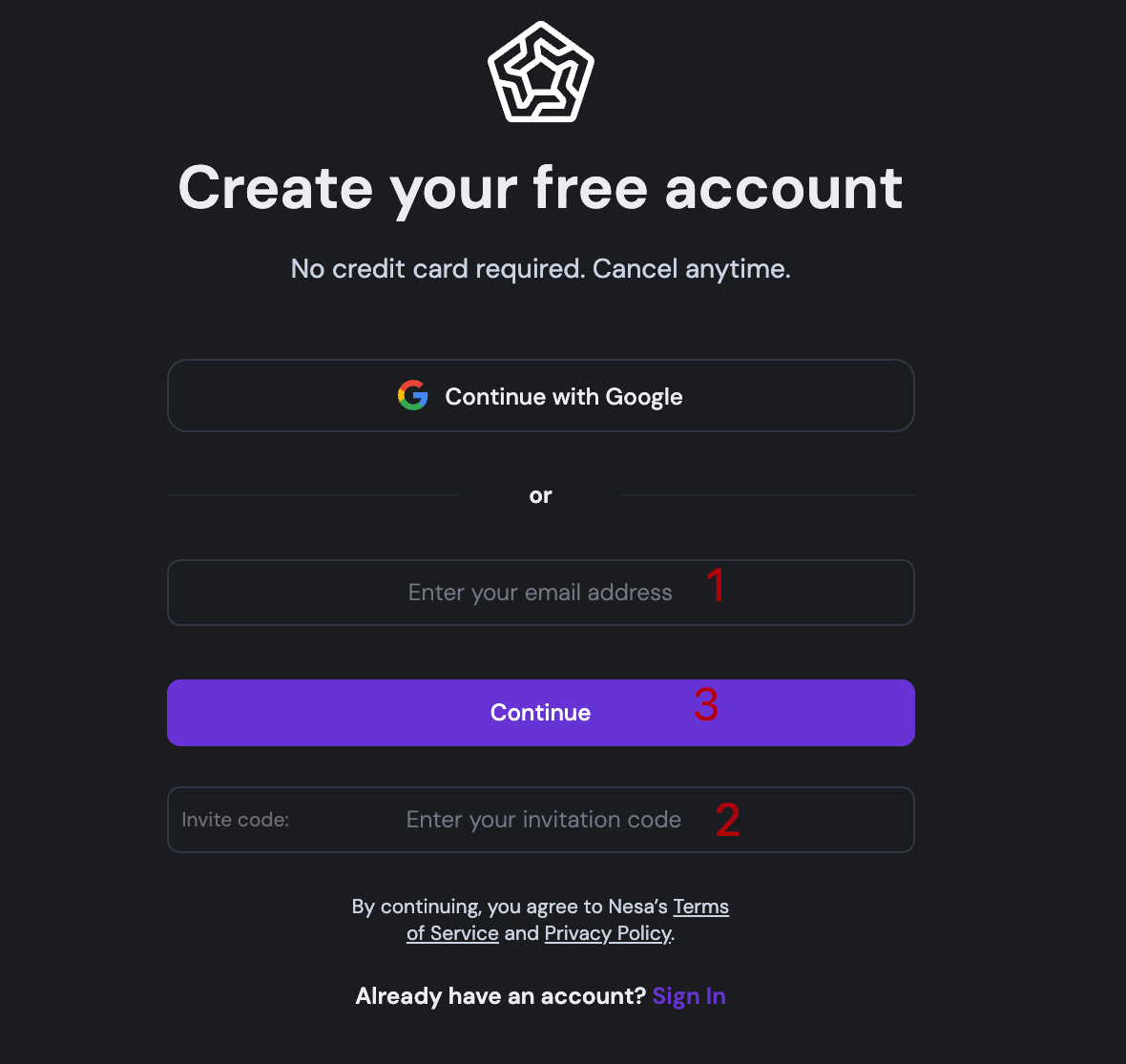 1. Go to the website, click Register, enter your email and access code. The code can be found on the project's X or by searching the hashtag #crnesacodes (when our users share them):