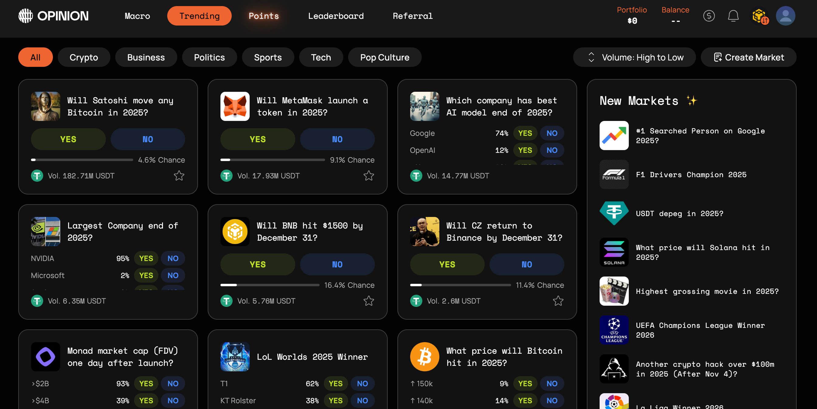 Today, Opinion Labs opened access to the platform for all users! We can place bets on popular events and earn points. 100,000 points will be distributed weekly. You must have at least $200 trading volume to earn points.