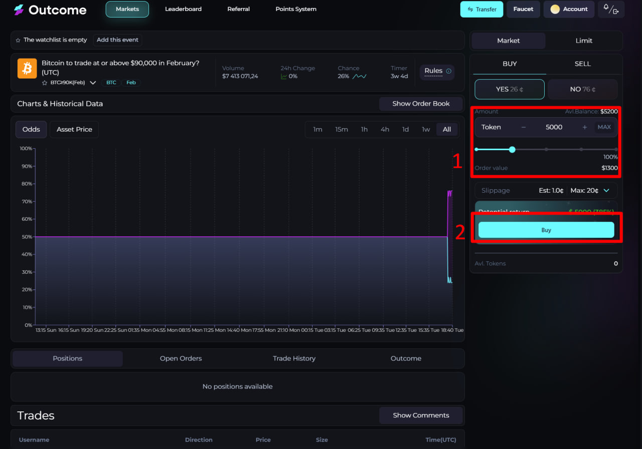 Predict-market Outcomes allows users to bet on events using up to 10x leverage.