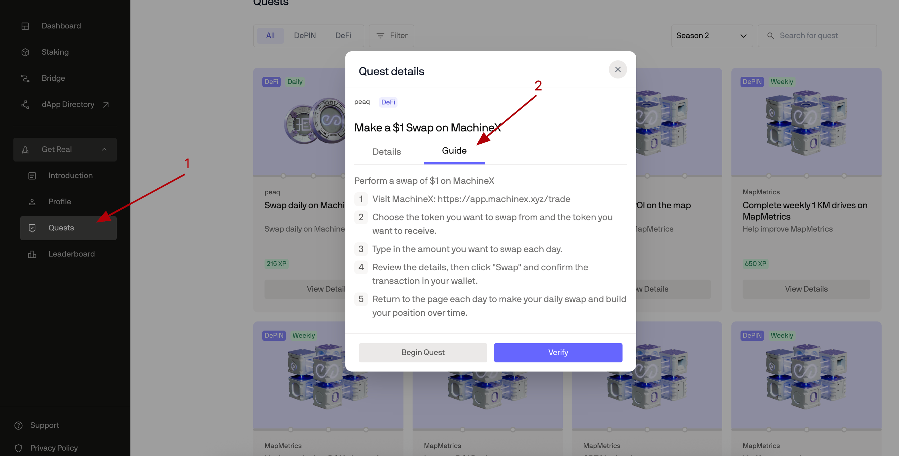 PEAQ has launched season 2 of the Get Real airdrop campaign with a total prize pool of 210 million $PEAQ tokens (about $19 million at the moment). We can complete quests and earn points that will be converted into project tokens. Note that in the second season, more quests with spending have been added — you need to make daily swaps.