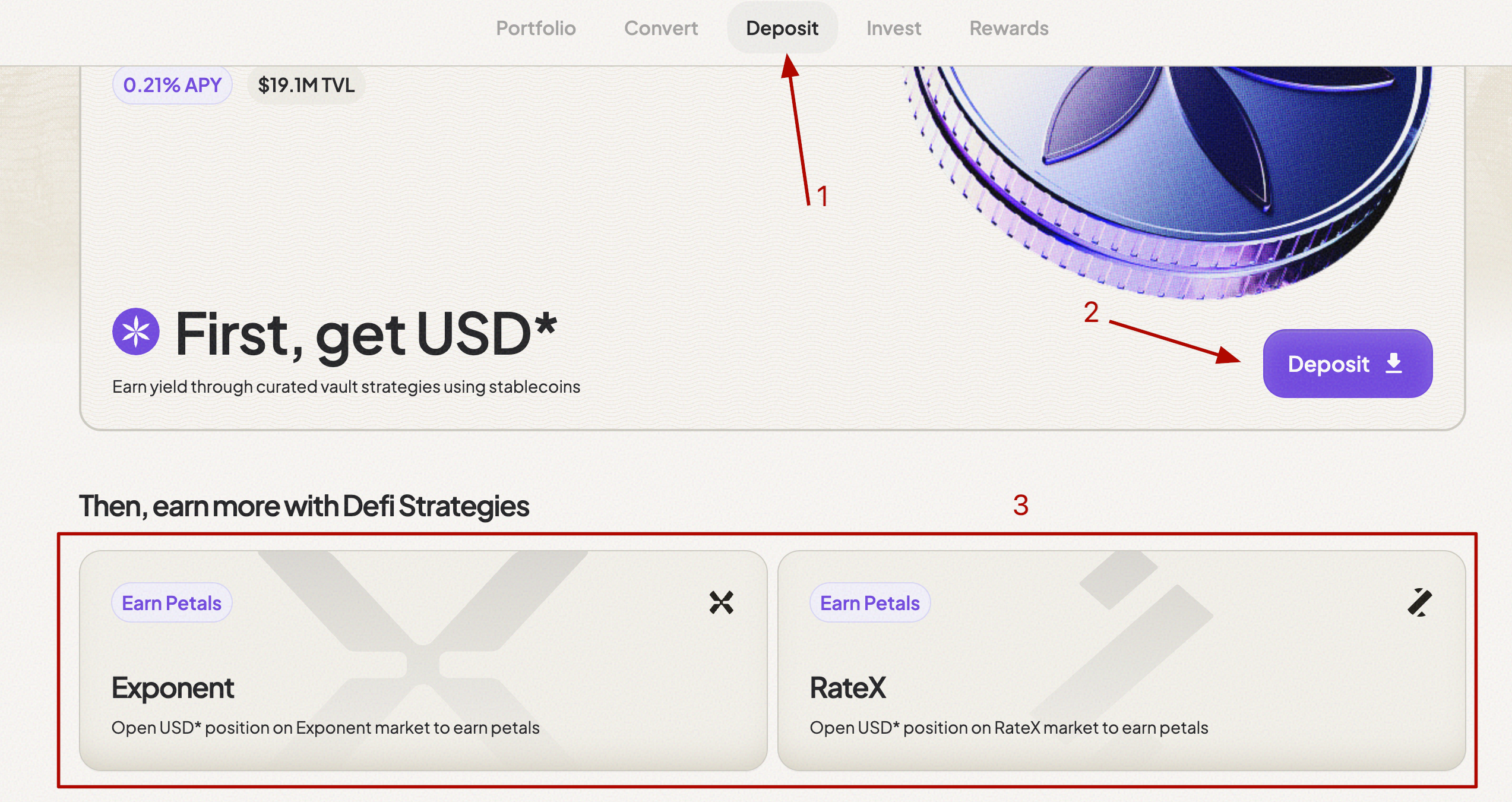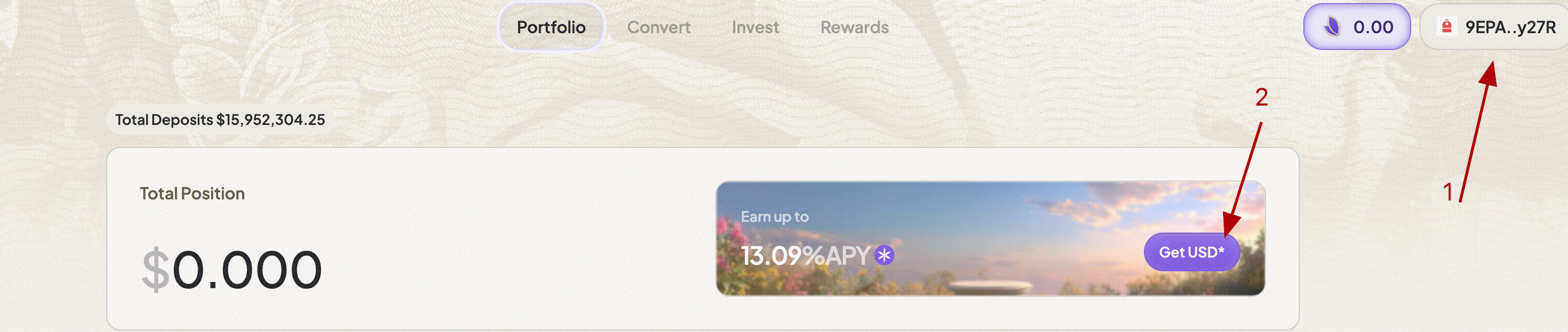 1. Go to the website, connect your wallet, and mint USD*.