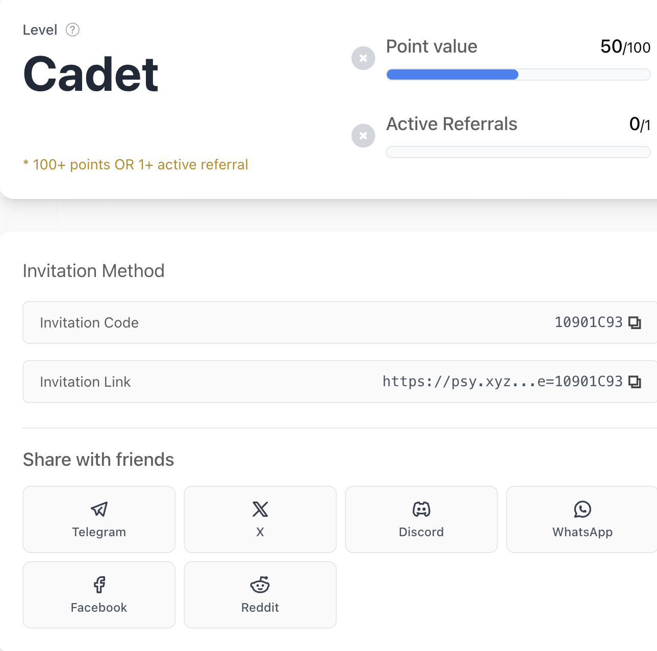 2. In the dashboard, you will see your level and referral link: