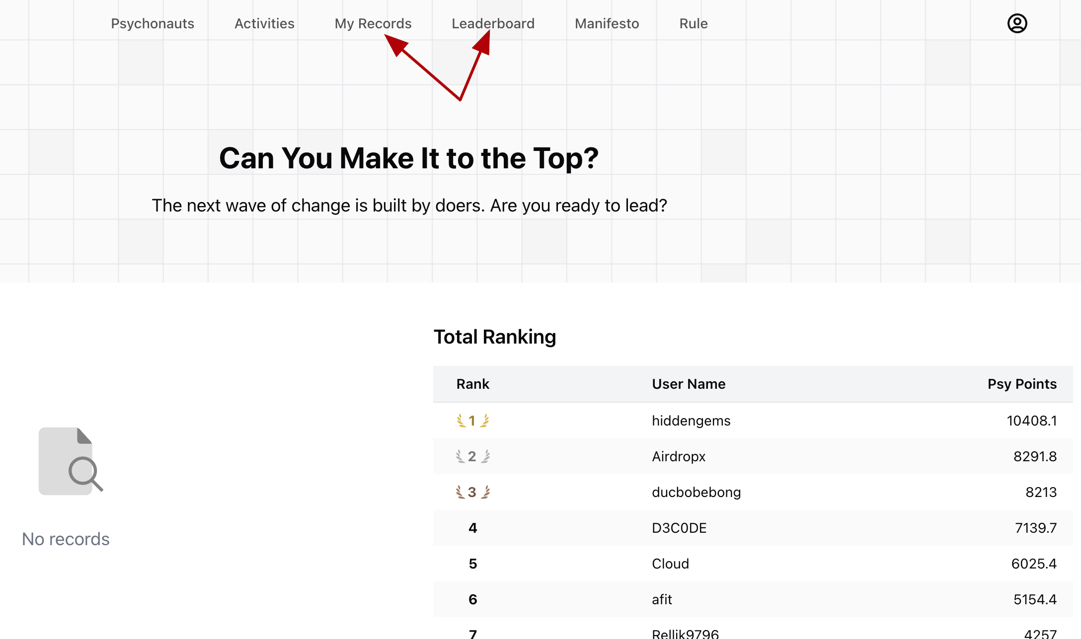 4. Track your progress in the My records and Leaderboard tabs: