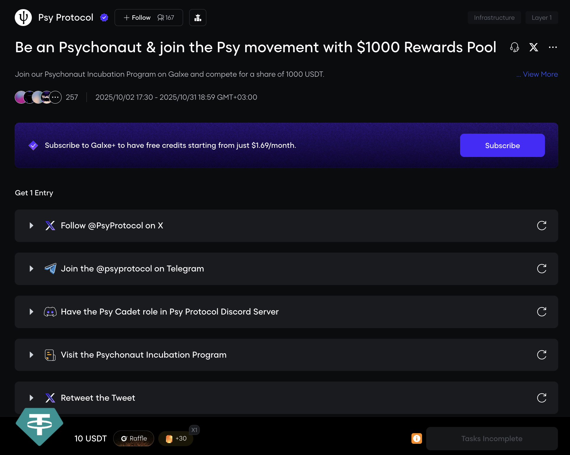 Complete the tasks to qualify for potential Psy Protocol (Prev. QED Protocol) airdrops and rewards . Follow step-by-step instructions and track task updates and statuses to become one of the potential recipients of the Psy Protocol (Prev. QED Protocol) Airdrop.