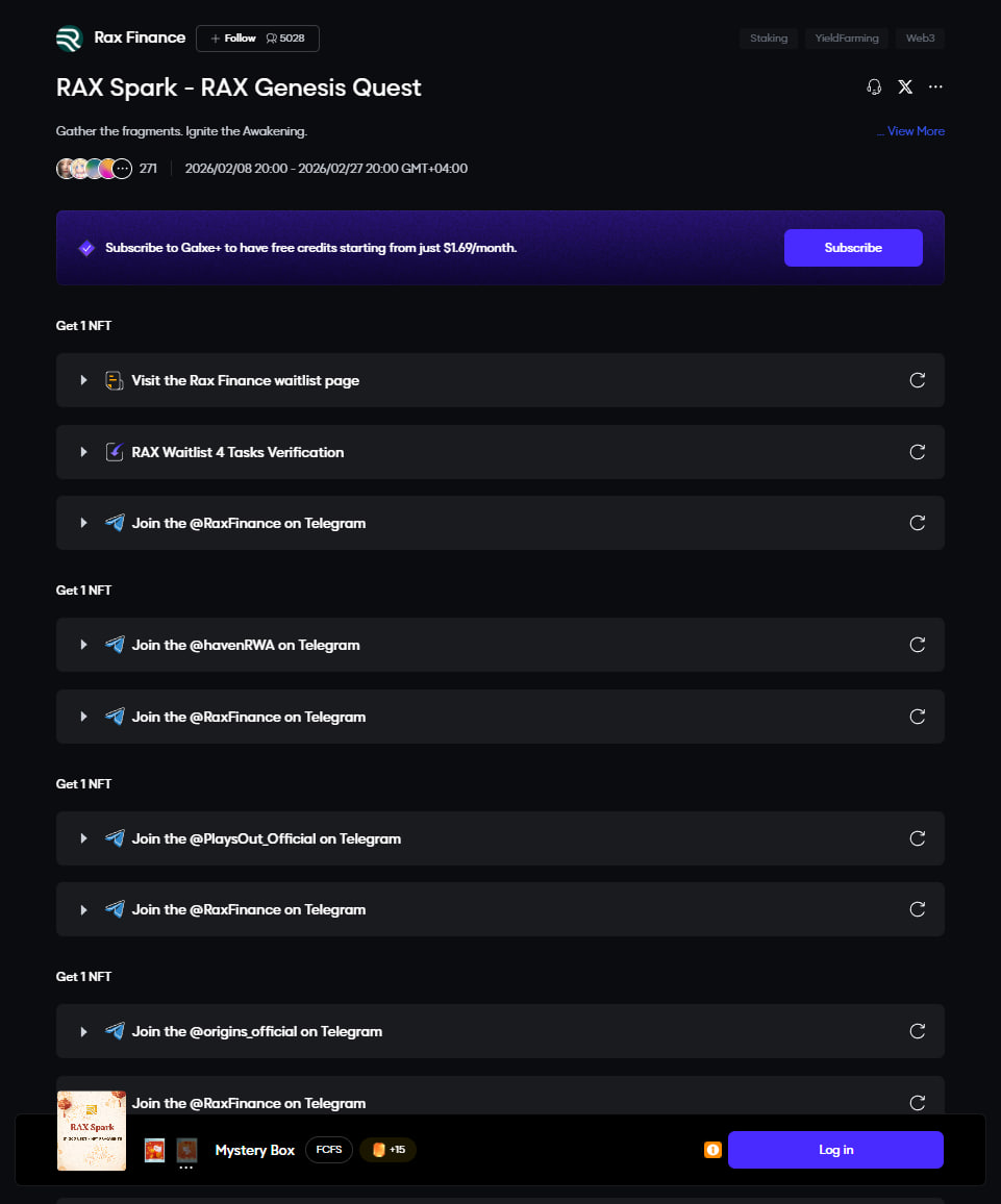 Complete the tasks to qualify for potential RAX Finance airdrops and rewards . Follow step-by-step instructions and track task updates and statuses to become one of the potential recipients of the RAX Finance Airdrop.