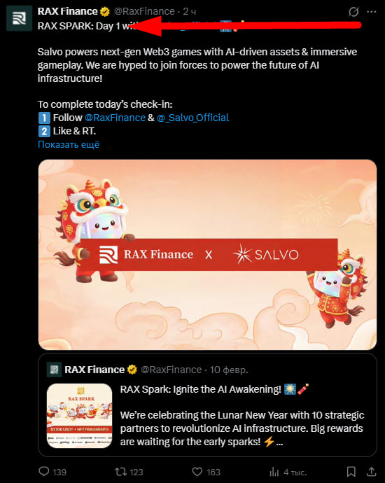2. Track daily tasks from RAX Finance partners on the X page.