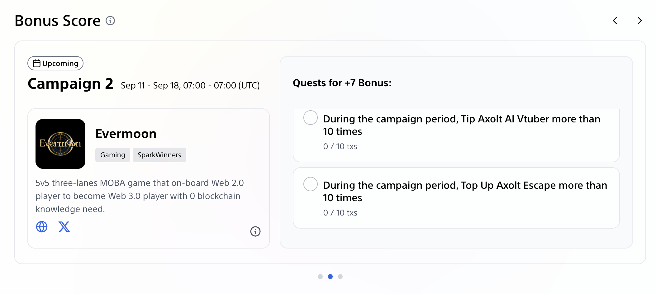 19. Evermoon badge - Make 10 transactions here or here. Announcement.
