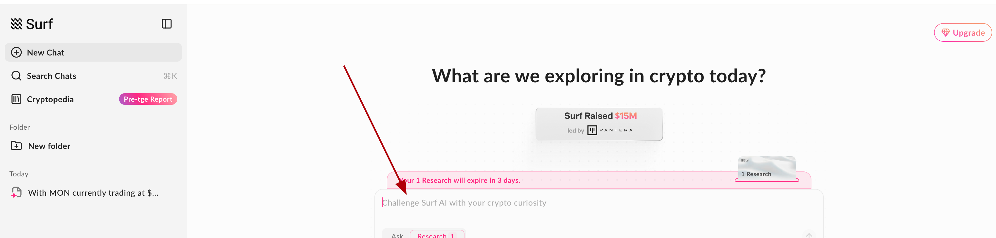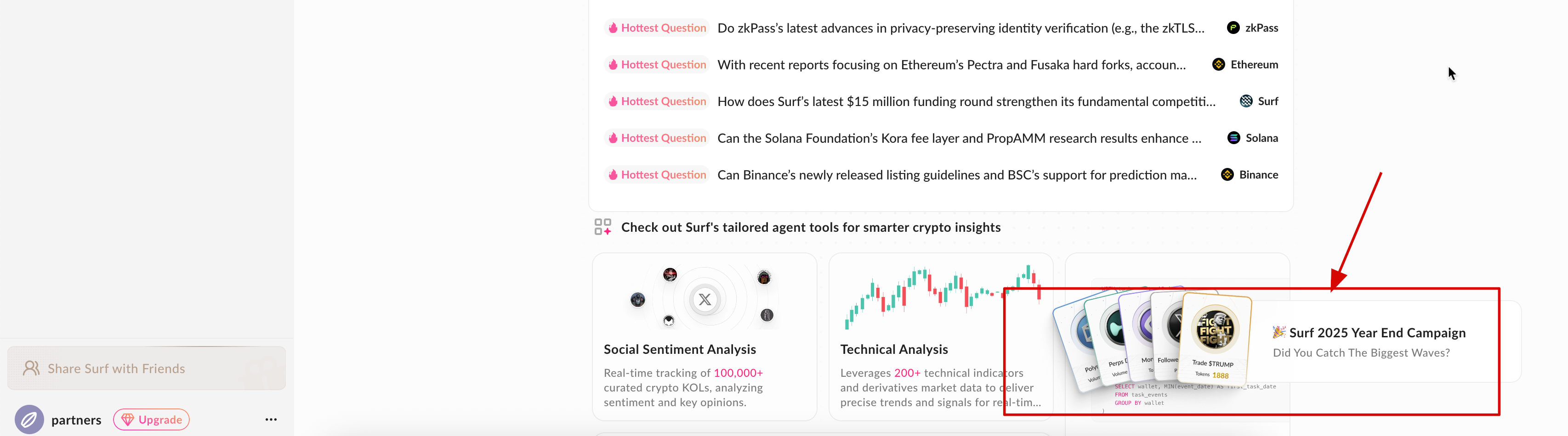 Yesterday (December 11), Surf raised $15 million in investments! The project has a website with AI. We can interact with it to qualify for a potential airdrop. There is a paid subscription available on the website, but you can also interact with the AI for free.