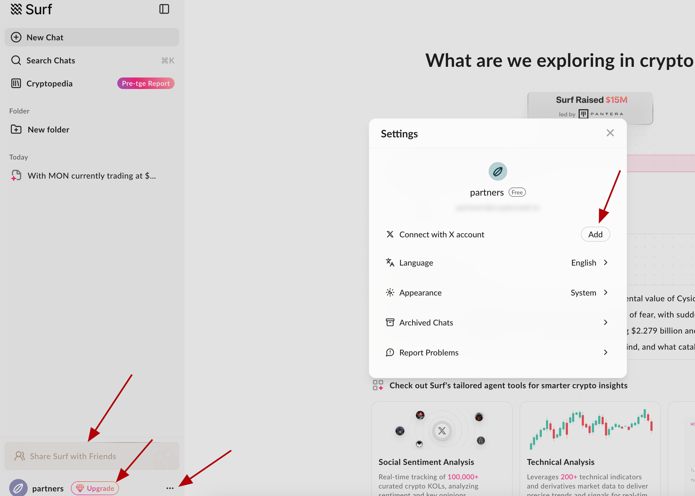 3. Connect your X account in the settings and invite friends. Purchase a subscription if you wish: