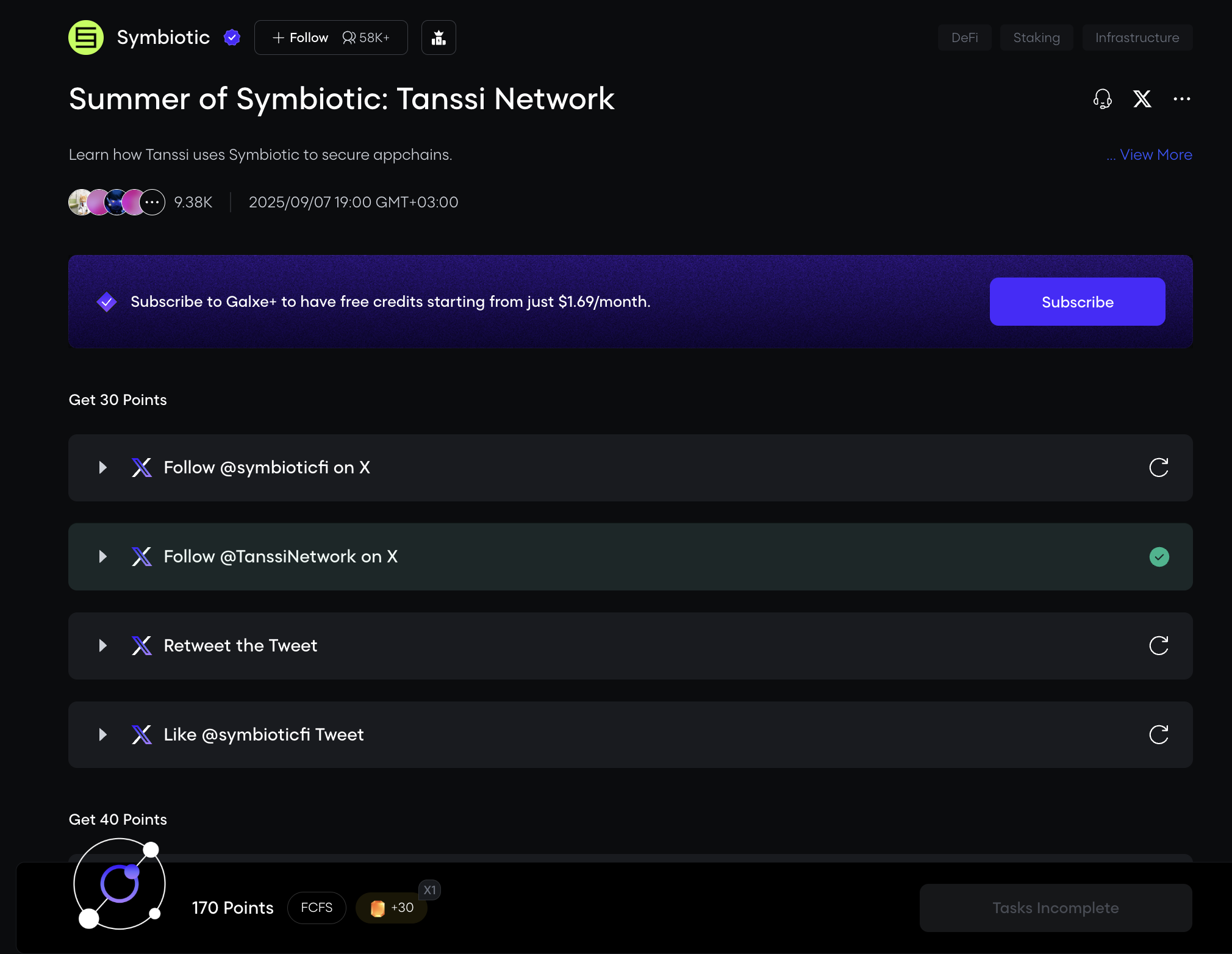 Symbiotic has launched a new campaign on Galxe! We can complete tasks and earn 130 points.