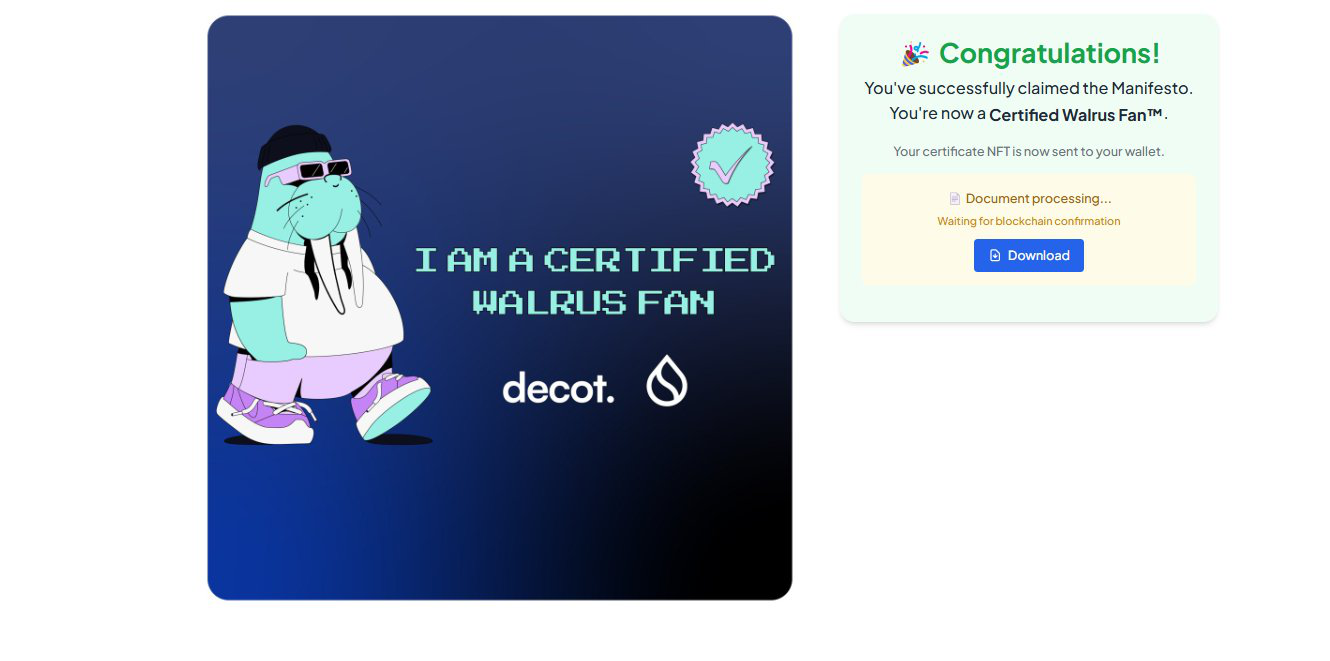 Walrus has announced Fan Certificates after the token staking airdrop! You can mint a certificate if you have the OG role.