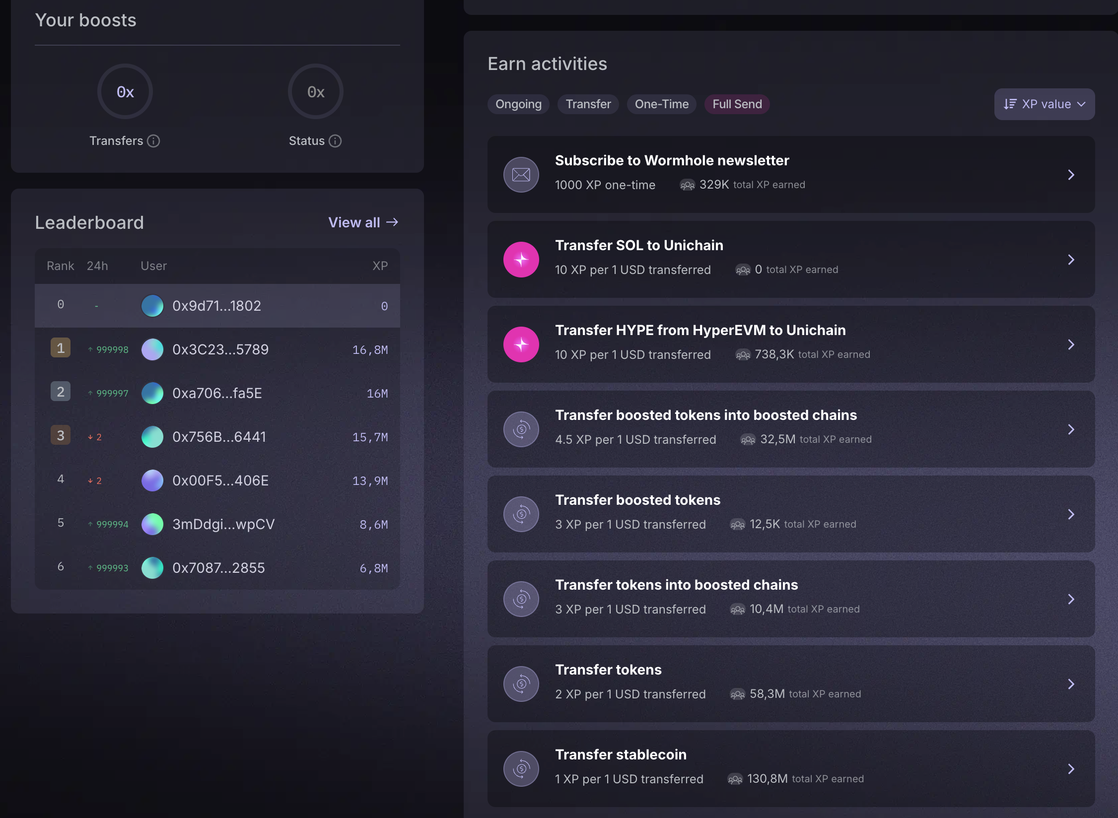 Wormhole has launched Portal Earn! We can earn XP for completing tasks, bridging tokens, and staking. In the future, earned XP can be converted into project tokens. If you applied to the Waitlist according to our guide, you should have received an email with a link to claim 10K XP.