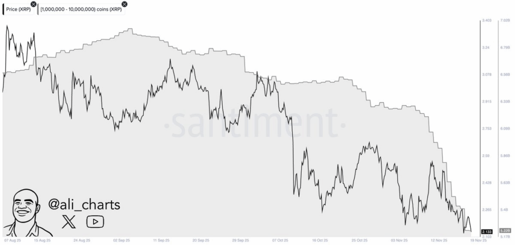 Según Martínez, las ballenas del XRP han descargado 190 millones de monedas en los últimos dos días, lo que podría haber pesado en el ánimo de los operadores y desencadenado la presión vendedora en el mercado.