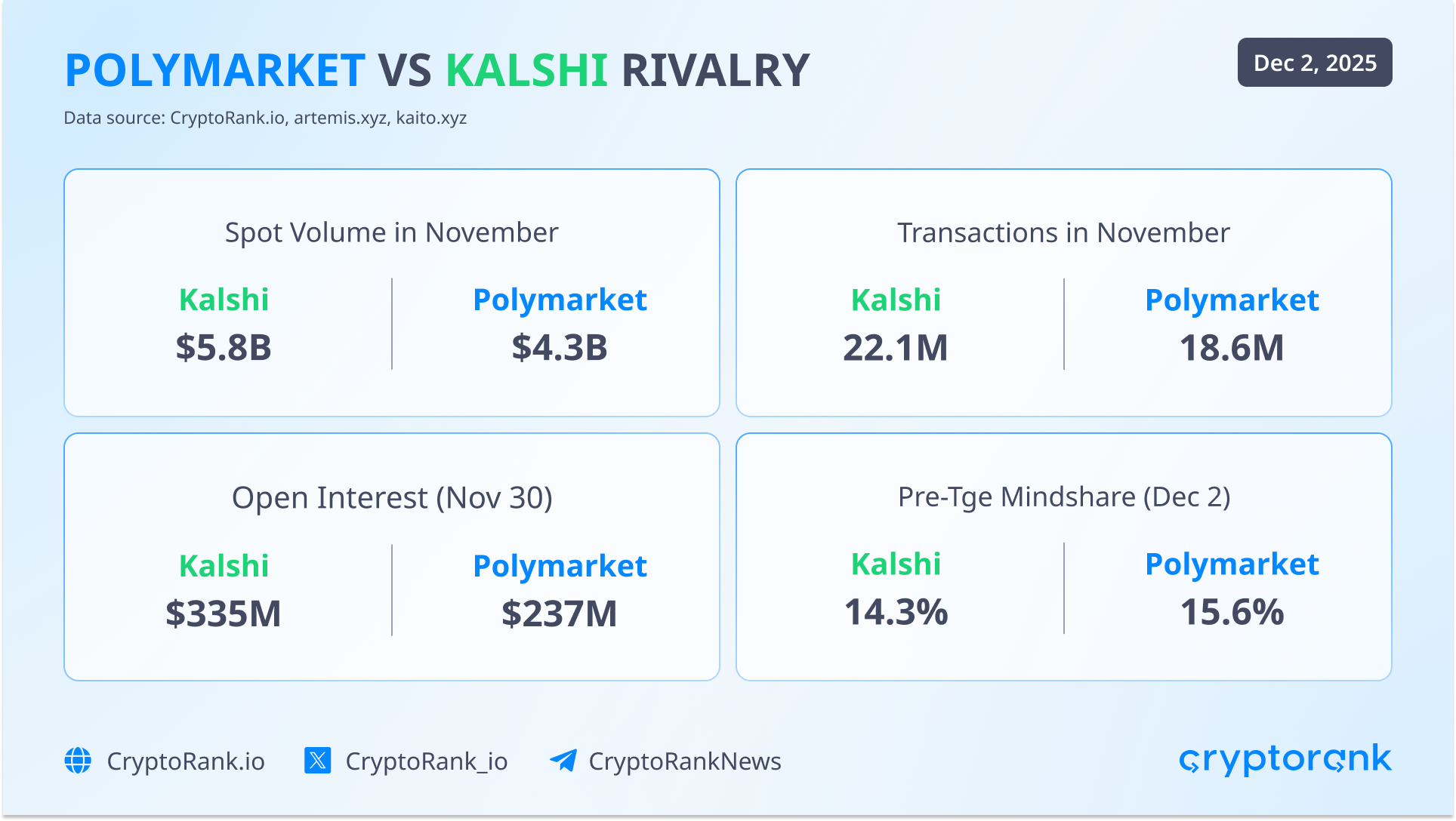 Kalshi also had a big month in November, securing a $1B investment round led by Sequoia Capital and CapitalIG, bringing its total funding to $1.57B. This pushed the project to a new valuation peak and signaled strong institutional conviction in the business model.