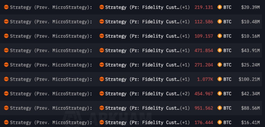 However, Arkham data showed that the largest Bitcoin treasury transferred 11,642 BTC from its holdings to a Fidelity custody wallet.
