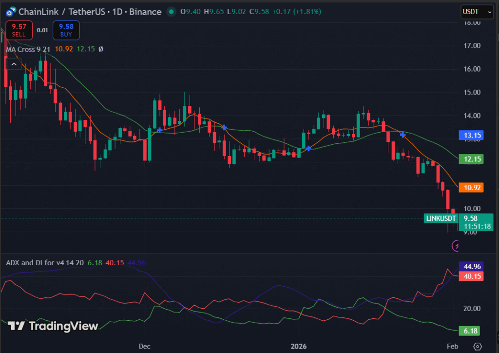 When checking on the Chainlink’s next price direction, the recent bounce attempts near short-term support around $9.50–$10 have been met with renewed selling, signaling resistance and limited upside participation.