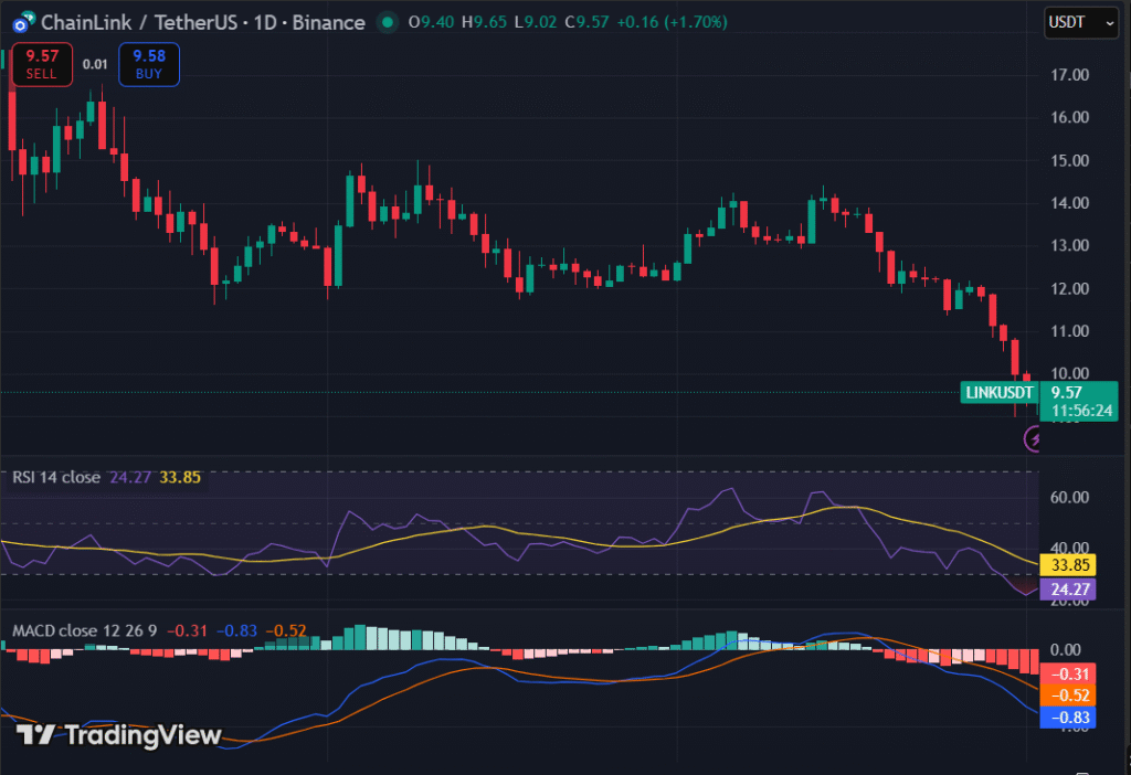 - Technical indicators show LINK remains in a downtrend, with RSI near oversold and MACD staying in bearish territory.