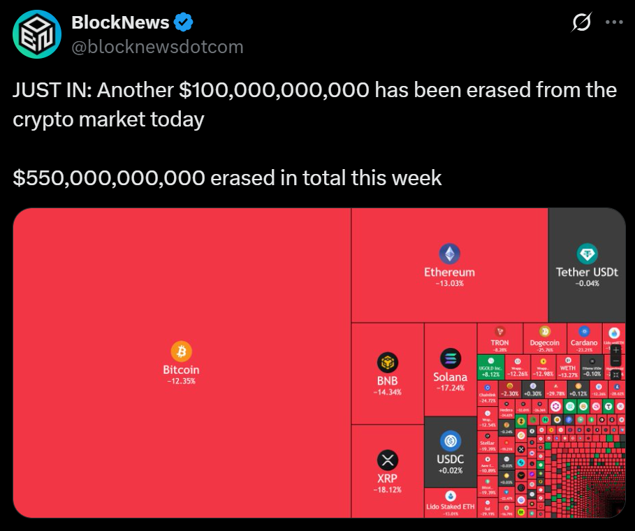 The post 3 Reasons Why the Crypto Market Dumped This Week: $550 Billion Erased first appeared on BlockNews.