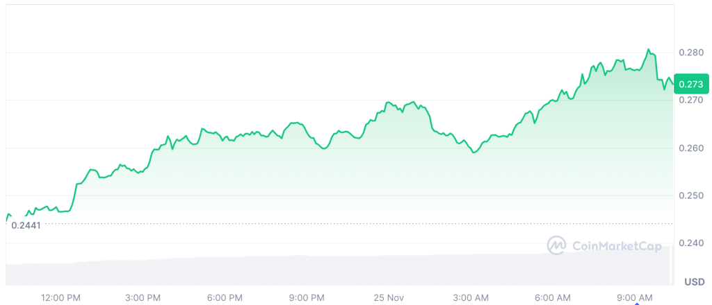 Kaspa (KAS) is currently trading near $0.049, up by about 22% in 24 hours. Volume has increased across active trading pairs, and participation from its user base has become more visible over recent sessions. The move aligns with sustained interest in its proof-of-work design and its focus on fast block processing, which continues to attract attention even when overall sentiment remains subdued.