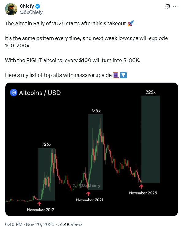 His posts drew attention because he claimed that low-cap tokens could rise sharply if the same pattern returned.