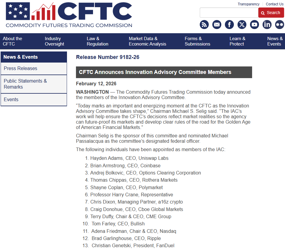 CFTC Chairman Rostin Behnam stated the committee would assist in helping regulators grasp the intricacies of the digital market. The members would contribute their expertise and knowledge from the digital asset marketplace. This advisory committee would meet at least four times in 2026 to discuss the problems regulators face in their work. The CFTC formed the committee through the Digital Commodities Consumer Protection Act’s powers. They would concentrate their focus on market issues such as compliance and risk management.