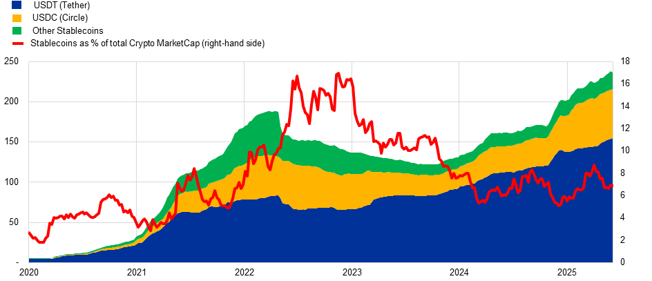 Euro-pegged tokens remain a small fraction of the market, with less than €350 million in circulation, European Central Bank (ECB) data shows.
