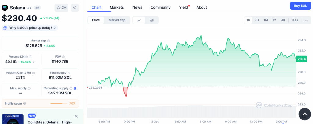 A movement from Binance to a wallet signals the intention to hold the Solana token ahead of price rise anticipation. This sentiment is backed by the current upward movement of 2.37% over the past 24 hours. SOL is exchanging hands at $230.40 when the article is being drafted. The price also reflects a significant surge of 19.37% in the last 24 hours, and a 9.71% uptick over the week.