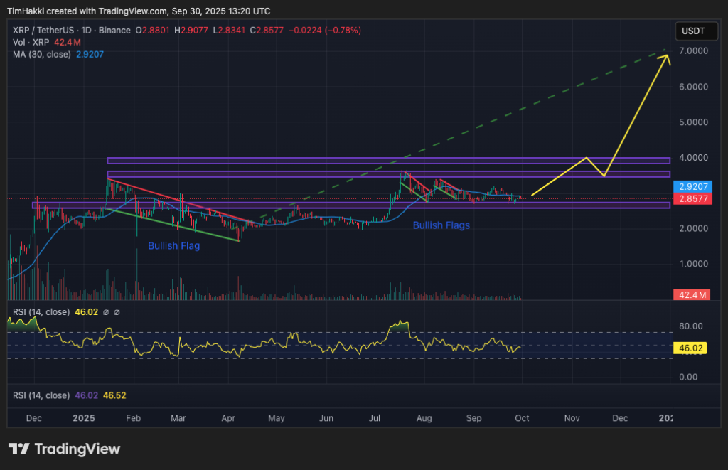 Technical indicators have flagged three bullish formations across support and resistance zones in the past year, hinting at a possible rapid breakout in Q4.