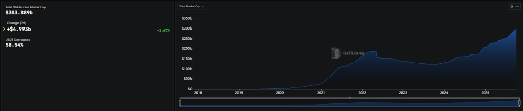 Recent data underscores this momentum. The stablecoin sector recorded its largest quarterly increase on record in Q3, adding roughly $46 billion in net new issuance, a 324% jump from Q2. Tether, Circle, and Ethena led the gains, pushing total supply to about $300 billion.