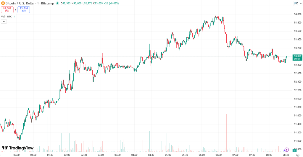 At the time of writing on Wednesday morning, BTC stood at $92,992. It recorded a significant increase from the intraday low of $86,410, over the $90,000 mark, and to the high of $93,928.