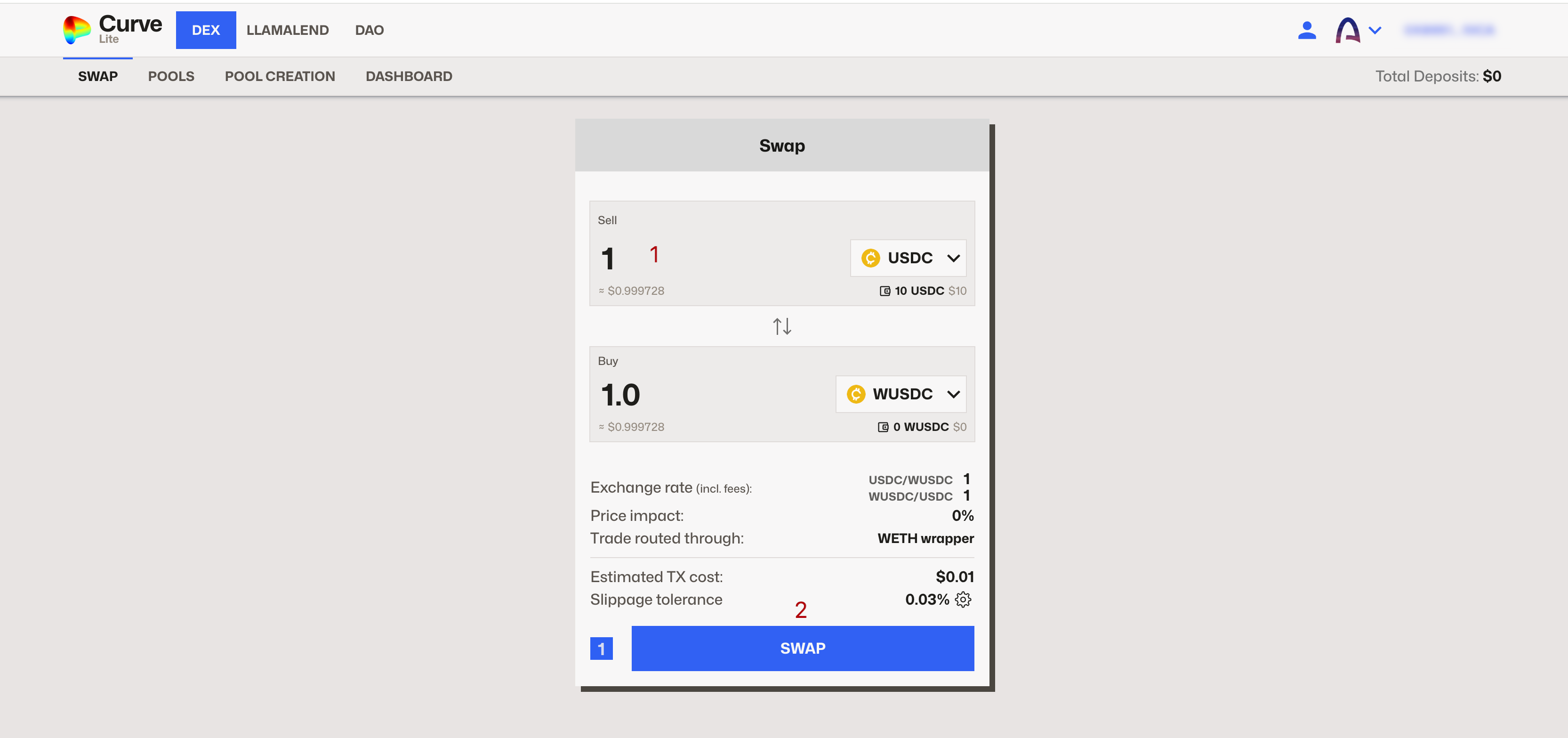 2. Перейдите на Curve и сделайте несколько свапов:
