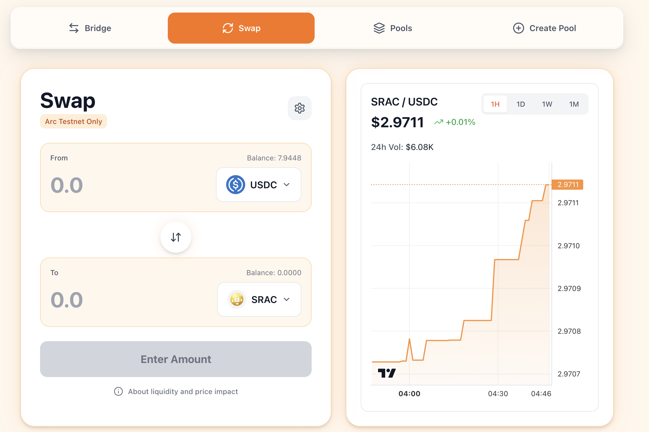 4. Бриджите токены, делайте свапы и добавляйте ликвидность на Defi on Arc: