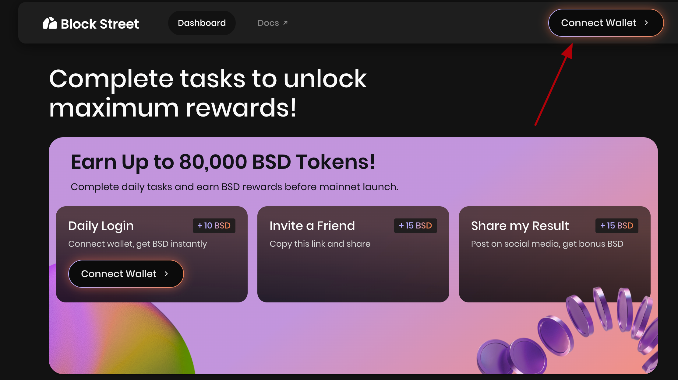 Выполняйте задания, чтобы претендовать на потенциальные аирдропы и награды Block Street. Следуйте пошаговым инструкциям и отслеживайте обновления и статусы задач, чтобы стать одним из потенциальных получателей Block Street Аирдроп.