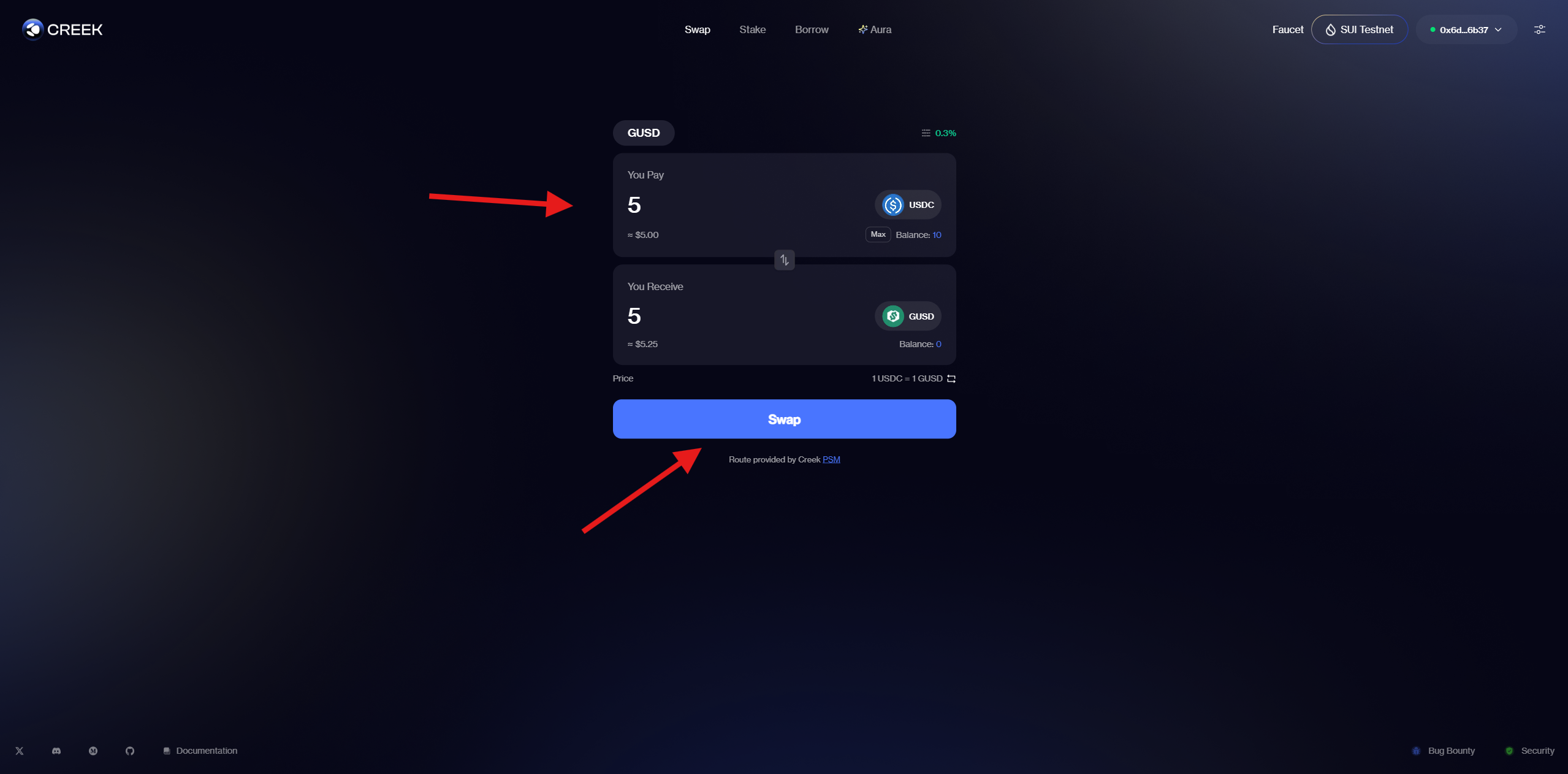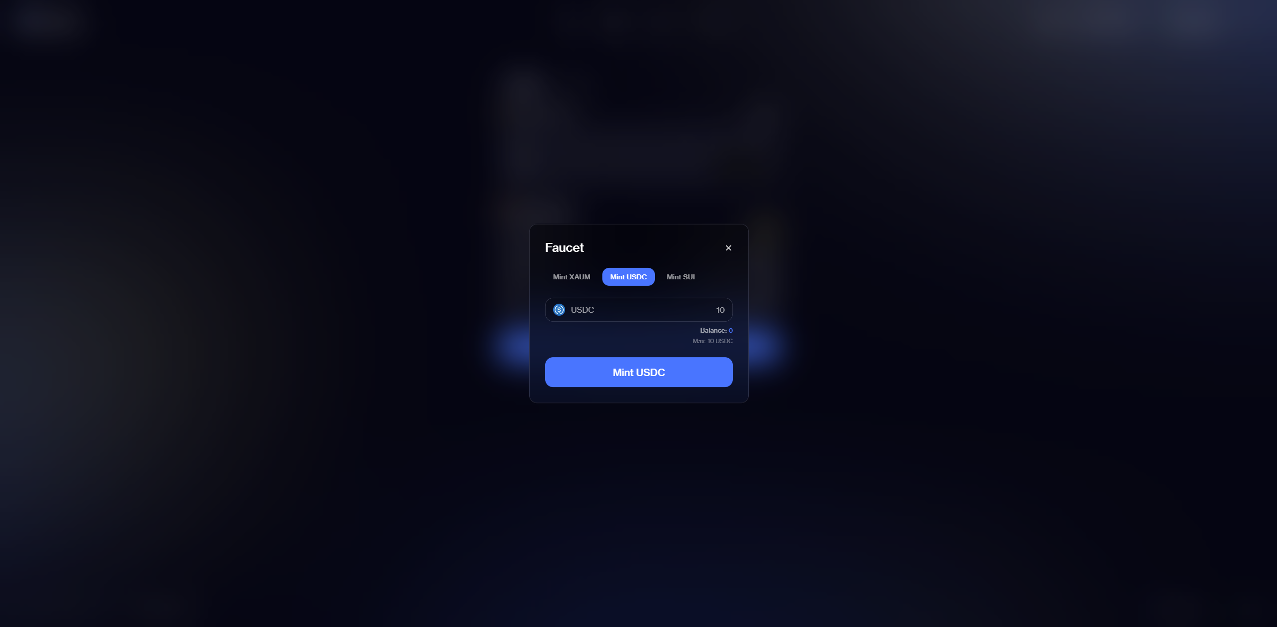 1. Перейдите на сайт и подключите кошелёк. Нажмите Faucet и запросите тестовые монеты. В первую очередь сделайте Claim $SUI для оплаты комиссий в тестовой сети.