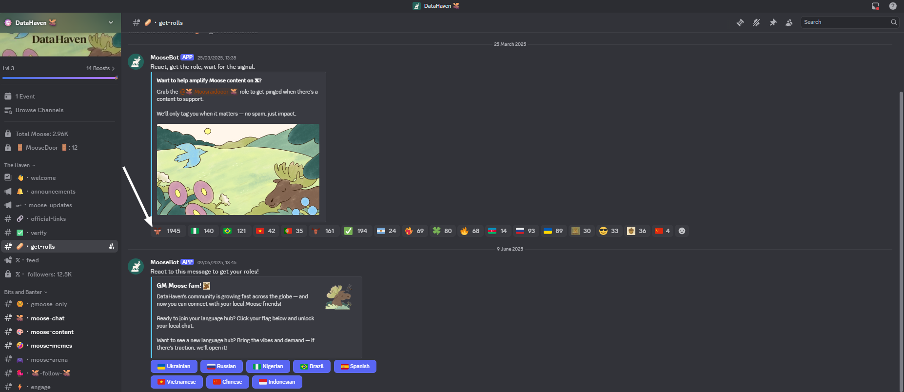 - По средам в канале #moose-arena проходят Moose-игра и розыгрыш (получите роль @Lucky Moose Entry в канале #moose-market, чтобы участвовать).