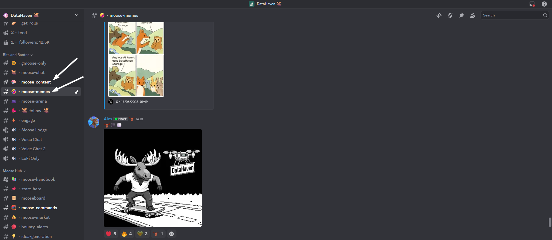 8. Присылайте ссылки на свой контент (видео, статьи, музыку и т.д.) в канал #moose-content. Мемы присылайте в канал #moose-memes. Если контент будет качественным, а мемы смешными, модератор выдаст вам Moose Key.