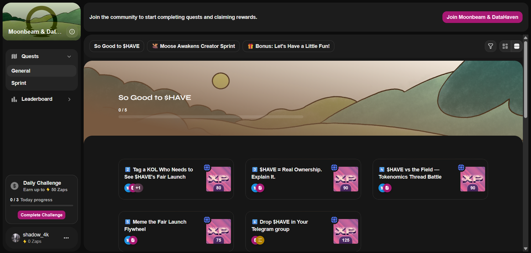 - Moose Keys можно получить через задания на Zealy, общение в Discord, взаимодействие с X (ex-Twitter), создание контента (мемы, видео), участие в мероприятиях и помощь другим. Их можно использовать для получения $GLMR, гача-спинов, эксклюзивных NFT и разблокировки секретной MooseDoor.