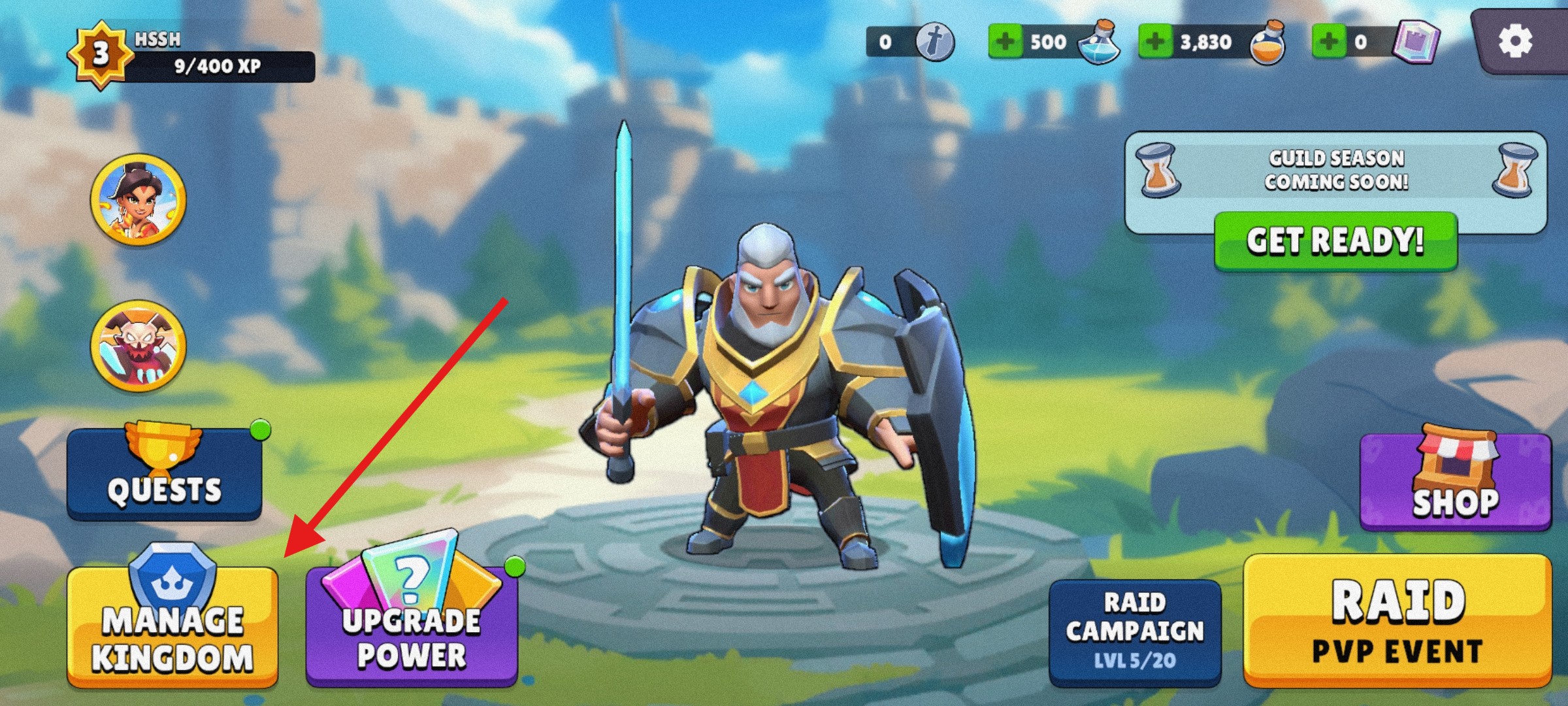 5. Нажмите Manage Kingdom чтобы улучшить свою базу. Так её будет сложнее зарейдить.