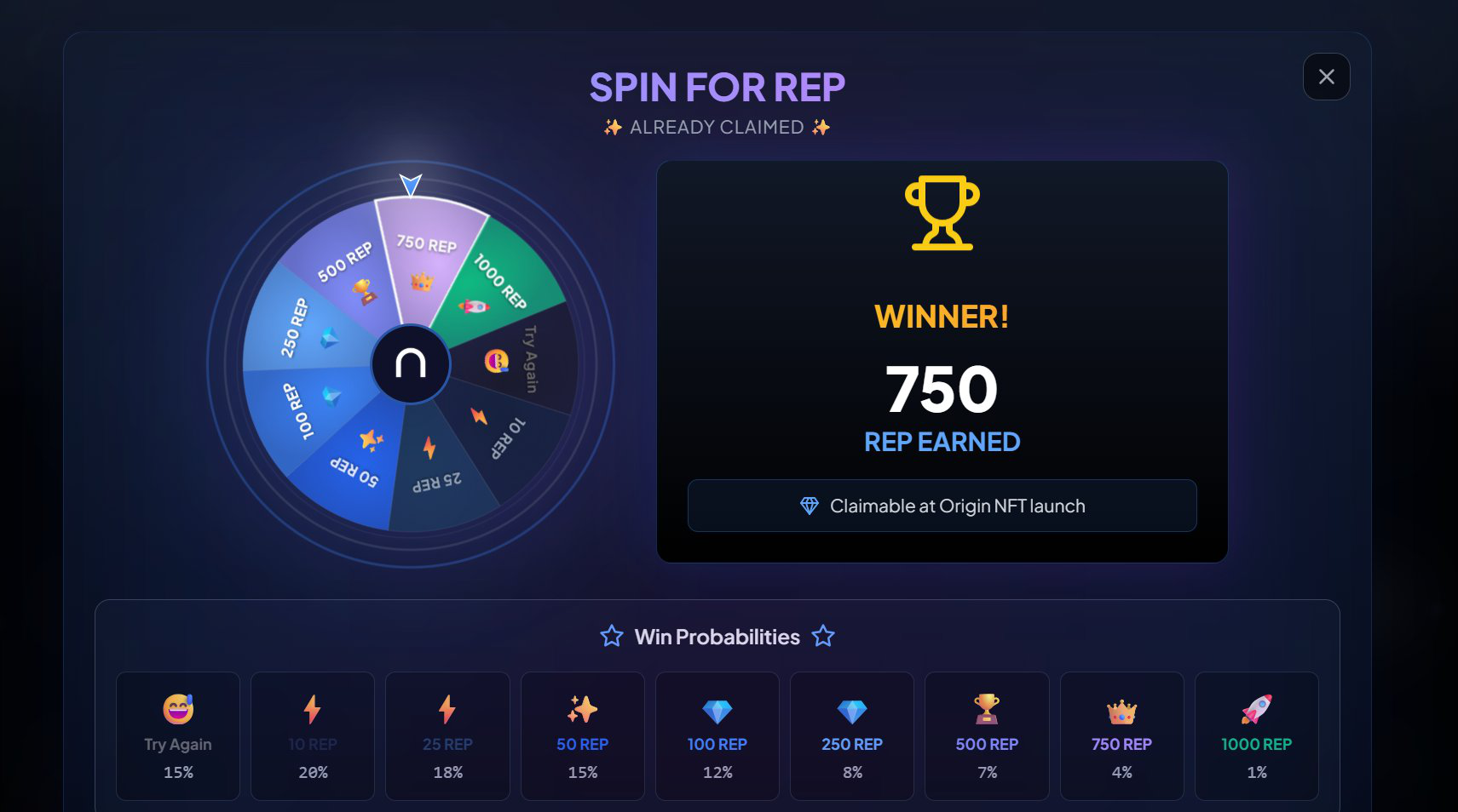 3. Прокрутите колесо удачи и получите REP поинты.