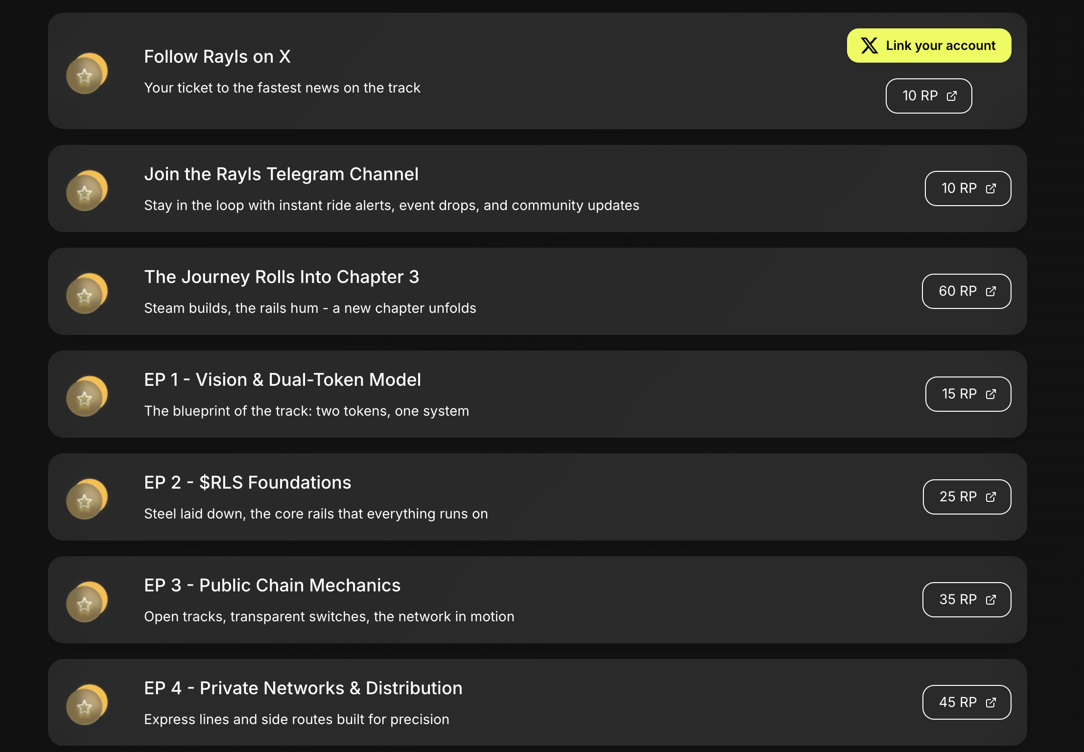 Rayls запустили Loyalty Program! Мы можем выполнять простые социальные задания, приглашать друзей и зарабатывать поинты. В анонсе указано, что за эту активность будут награды.