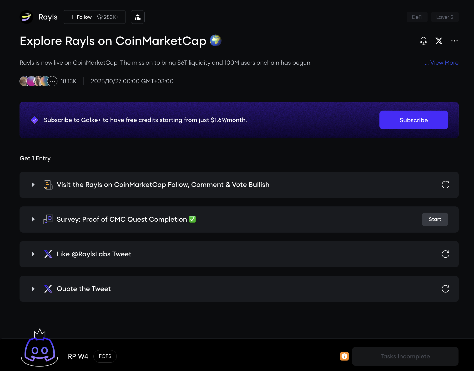 Rayls добавили новую кампанию на Galxe. Мы можем выполнить задания и получить роль RP W4.
