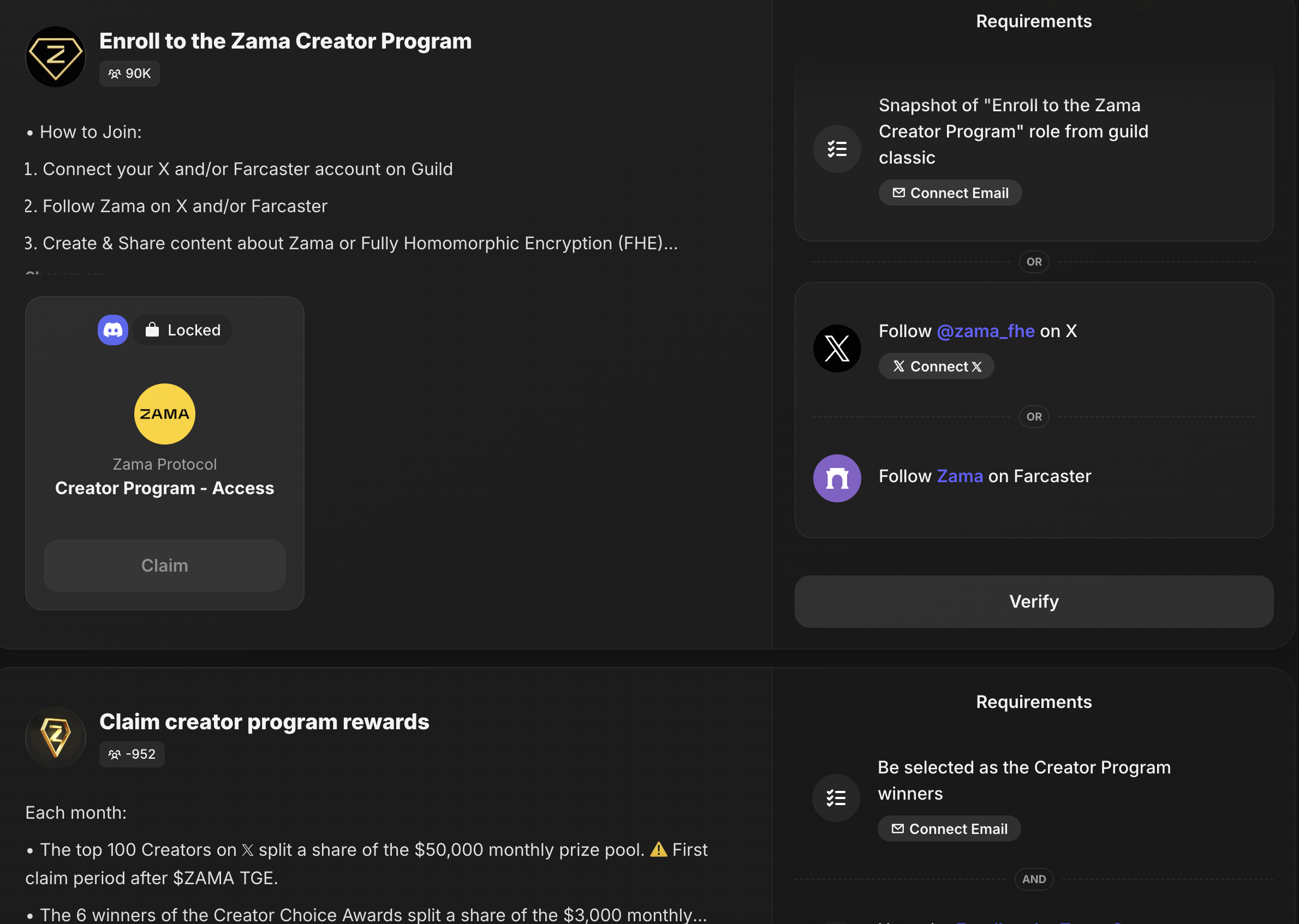 Zama анонсировали запуск 2 сезона Creator Program с ежемесячным призовым пулом $53K. Топ-250 пользователей получат OG NFT, а также награды в $ или токенах $ZAMA после TGE.