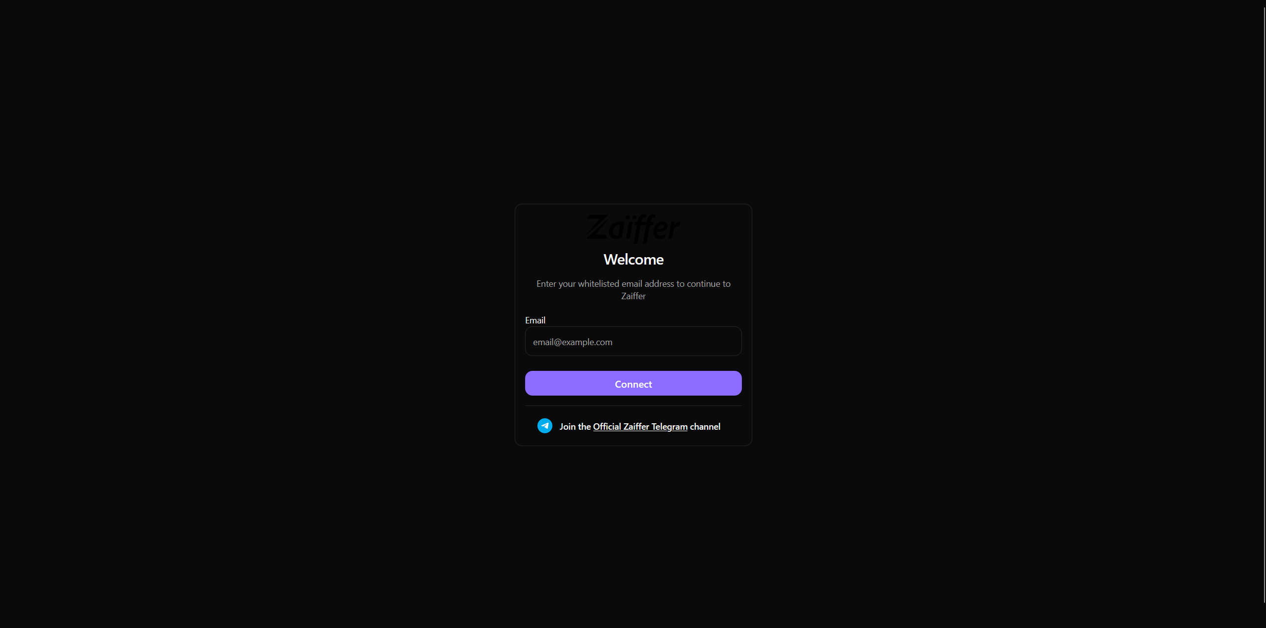 3. Перейдите на сайт и введите раннее отправленную почту в форме. Подключите кошелёк и войдите в хаб тестнета. Если прошло более суток с момента отправки Whitelist формы, но доступа вы так и не получили, попробуйте ввести contact@zaiffer.org.